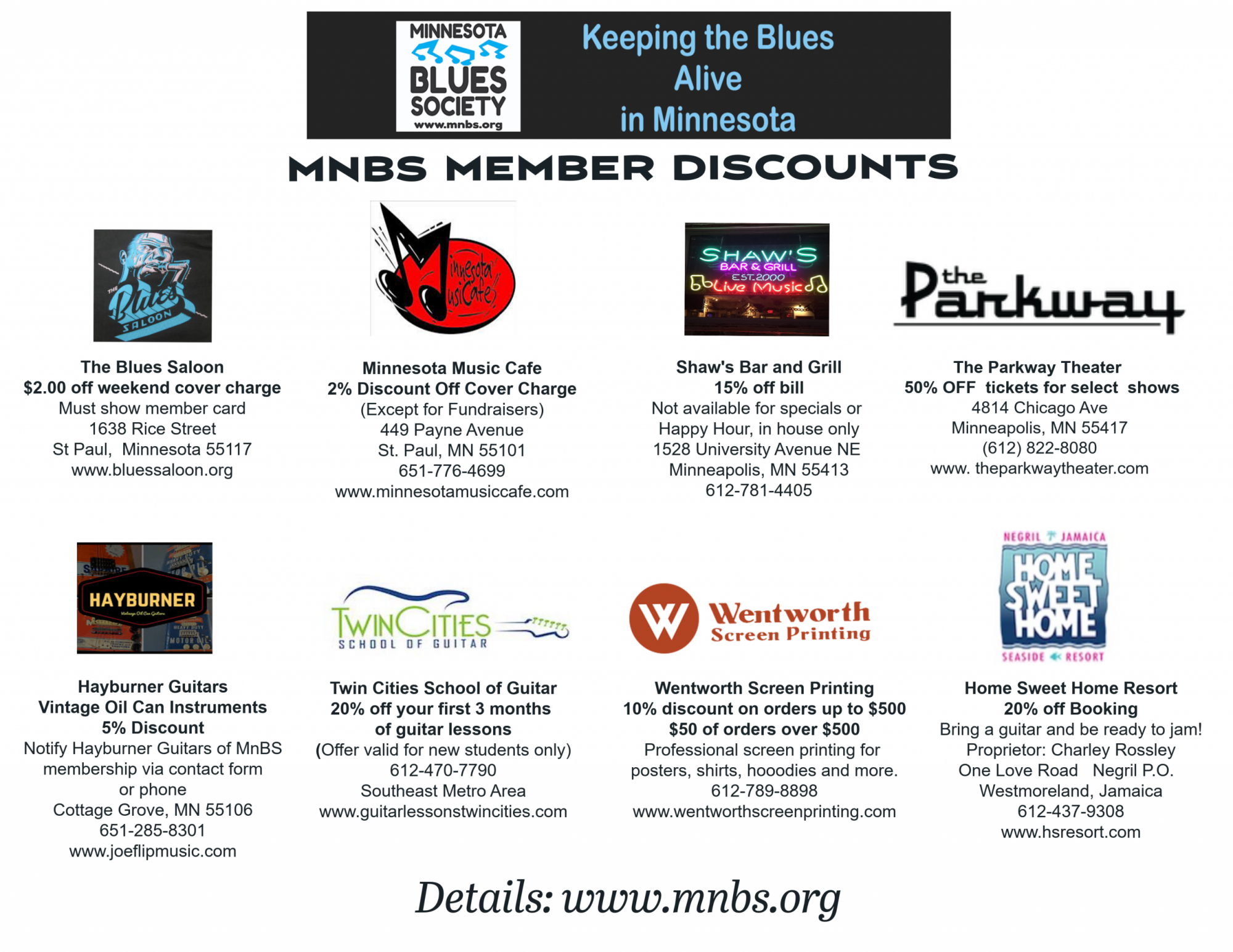 The Minnesota Blues Society’s Mission is to preserve, commemorate, educate, celebrate, and promote the past, present, and future of Blues music in Minnesota